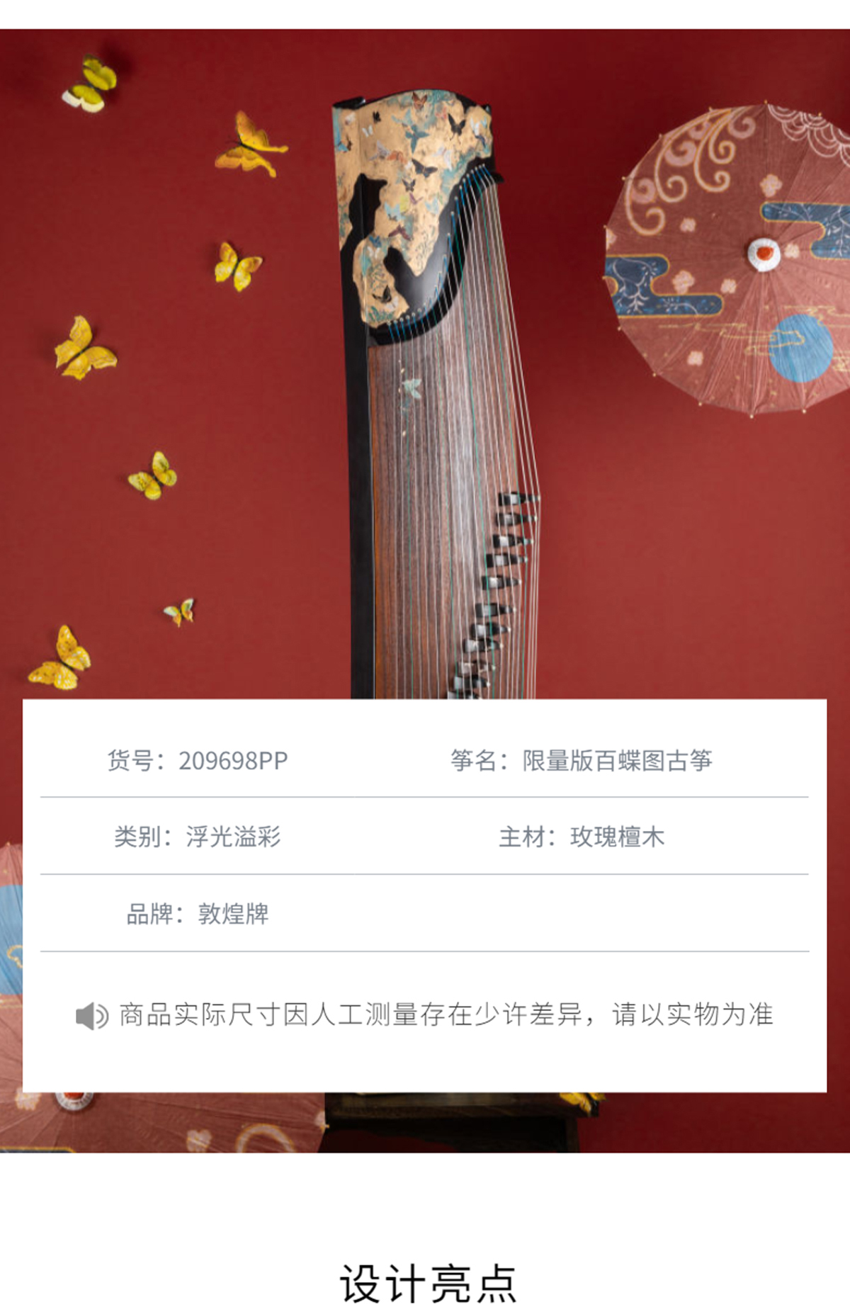 敦煌古箏209698PP-限量版百蝶圖(金)